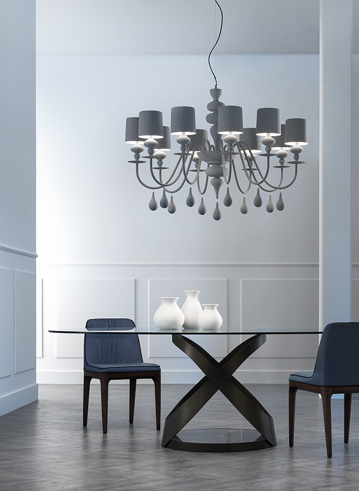Eva represents the evolution of the classic chandelier with a modern twist in design and materials.