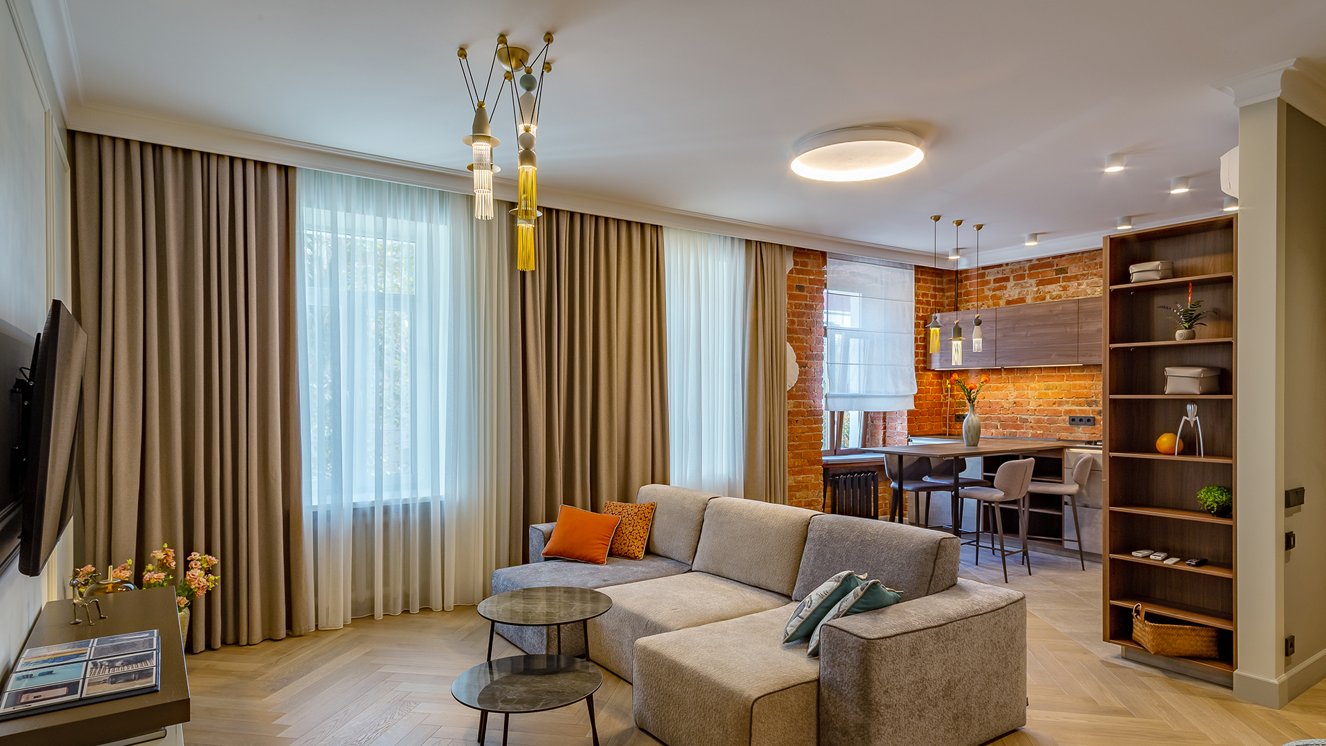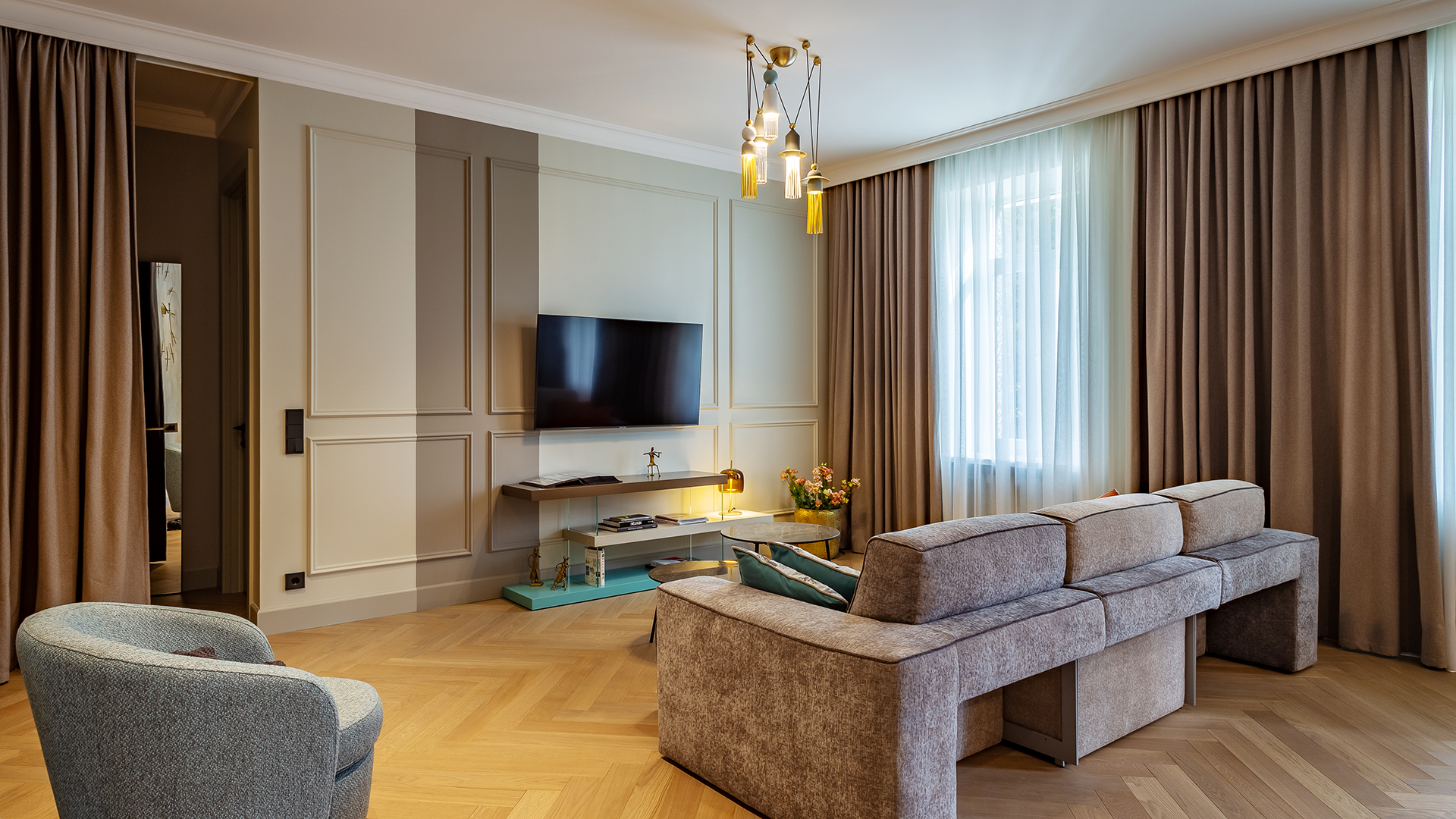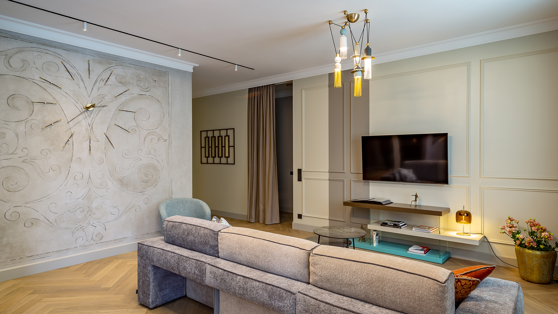 Interior Design N. Vladimirskaya signs this beautiful residential project with Nappe, a Masiero iconic product designed by Marco Zito.